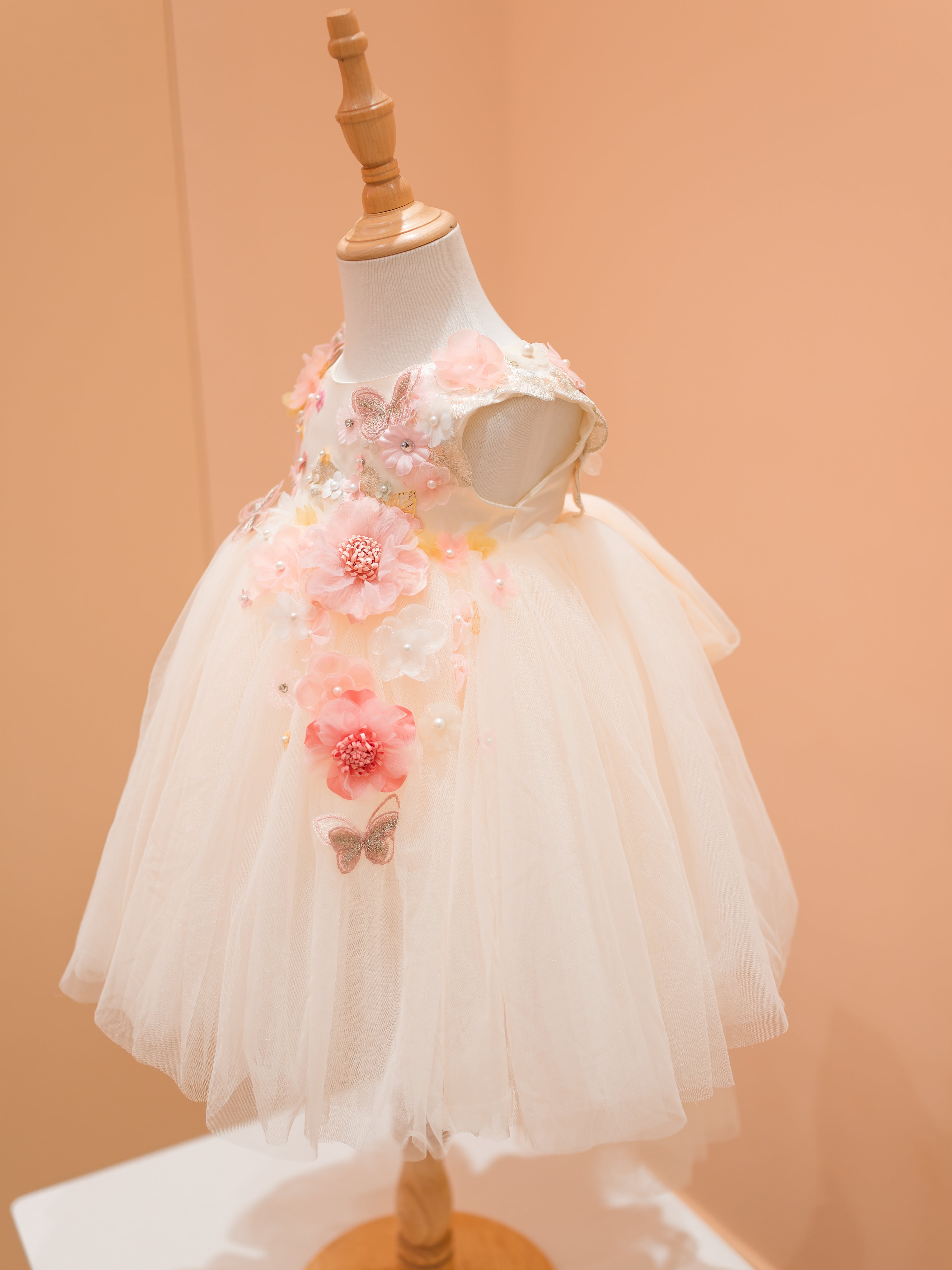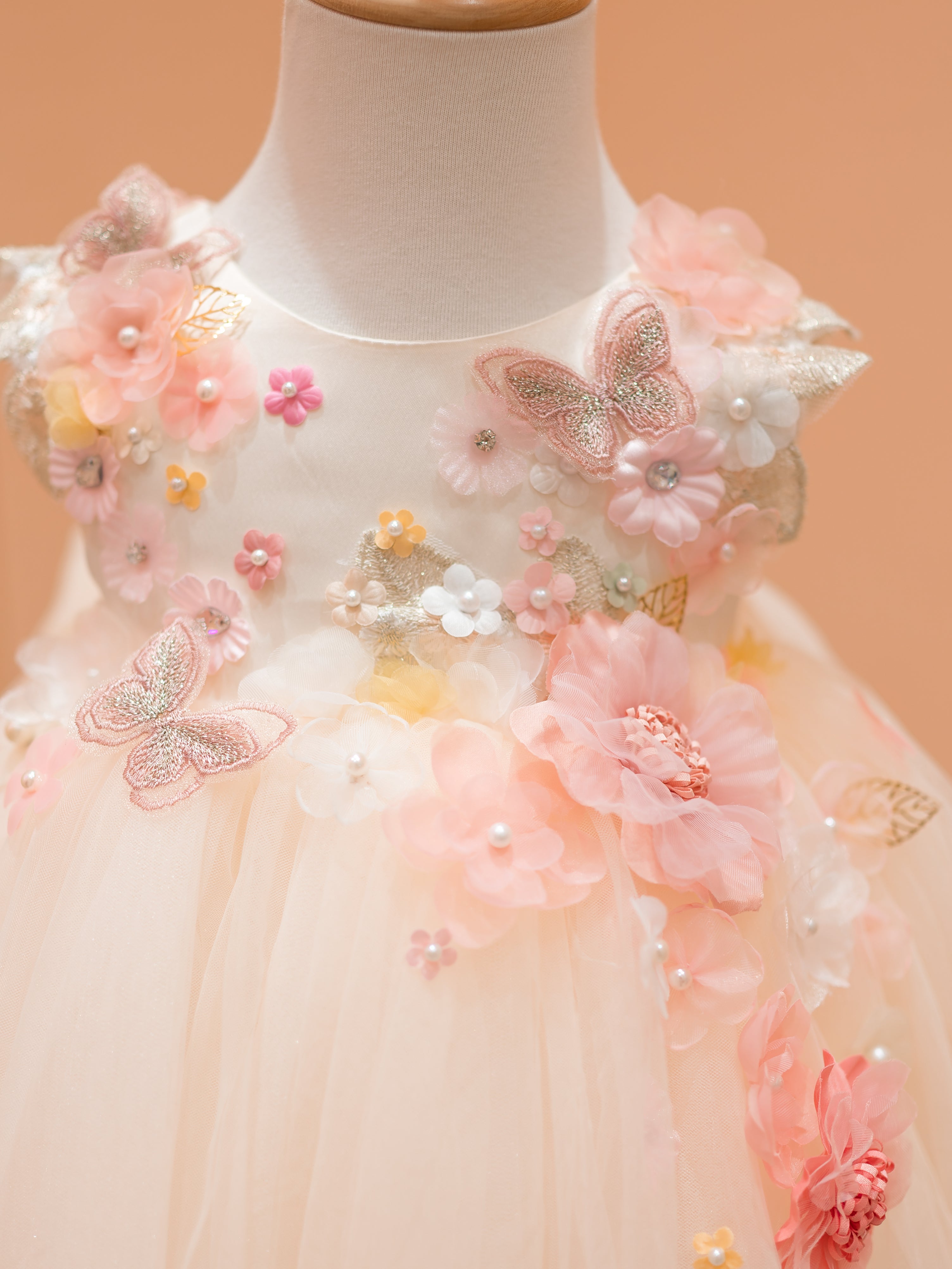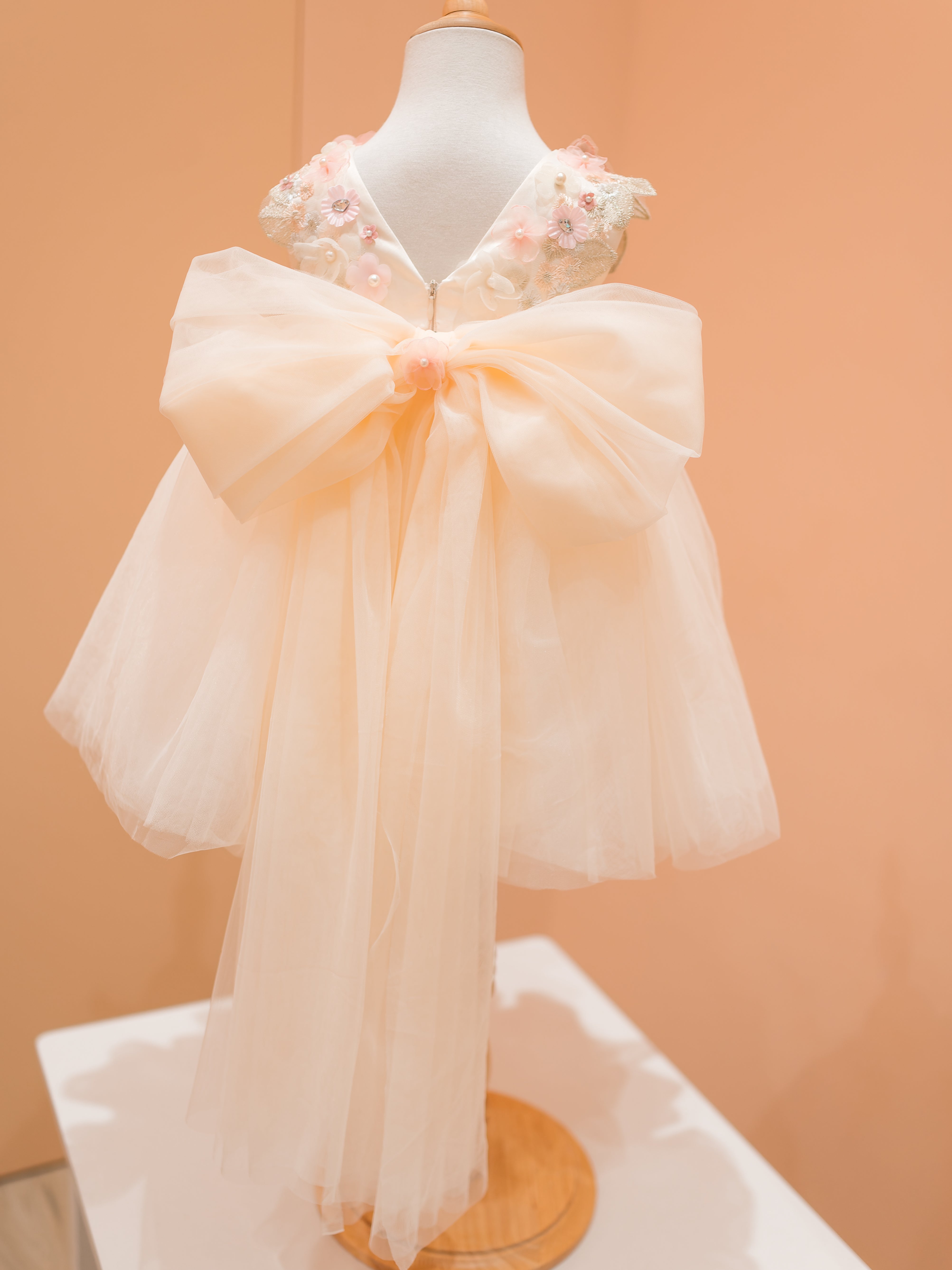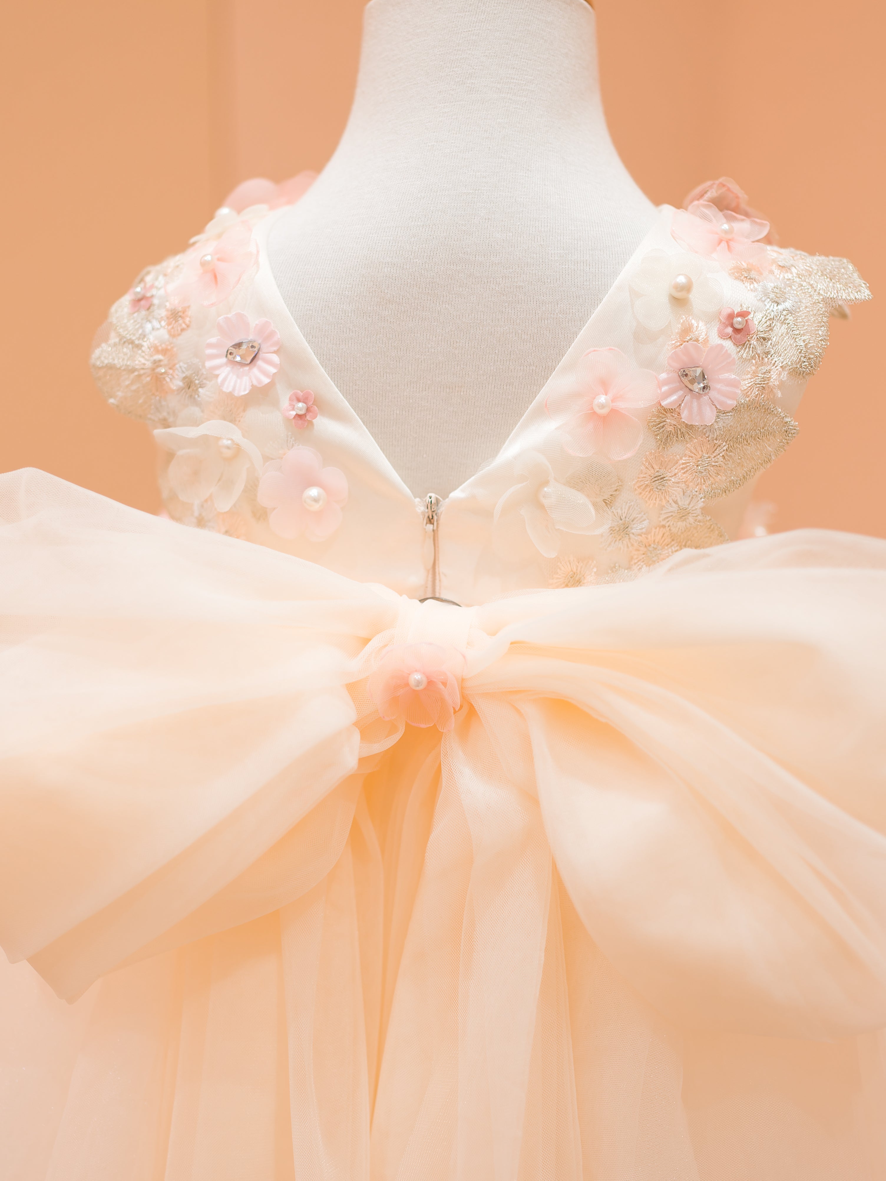 Fairy Blossom light pink feathered shoulder dress